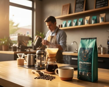 Cafés de origen colombiano elaborados con procesos naturales y controlados que realzan cada aroma y sabor, ofreciendo una experiencia sensorial única en cada taza.