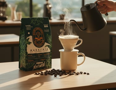 Nuestro Café Natural resalta por su carácter vinoso, su dulzor natural y su cuerpo envolvente. Obtenido mediante fermentación controlada de la cereza completa, ofrece una taza limpia y expresiva. Ideal para paladares que buscan intensidad, complejidad y un viaje sensorial en cada preparación.